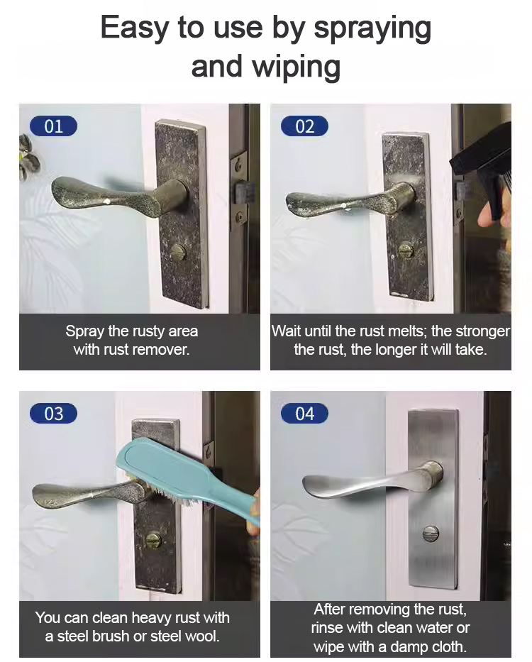With just one spray, rust automatically dissolves and falls off without damaging the metal itself or harming your hands!